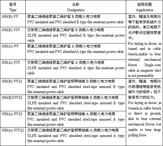 产品标准 本产品按GB12706《额定电压35kV及以下铜芯、铝芯塑料J缘电力电缆》和GB12666《电线电缆燃烧实验方法》标准生产,同时还可根据用户需要按******电工委员会推荐的IEC标准、英国BS标准、德国DIN标准、美国ICEA标准及日本JIS标准生产。 The product is manufactured according to the standard of GB12706 and GB12666 or IEC,BS,DIN,ICEA,and JIS upon request.适用范围 本产品适用于工频额定电压0.6/1kV及以下配电线路或工业装置中有耐火要求的固定敷设场所使用。 The product is suitable for use in power distribution lines or fixed installations with rated power-frequency voltage up to and including 0.6/1kV. 使用特性 ·工频额定电压U0/U:0.6/1kV。 Rated power-frequency voltage U0/U:0.6/1kV. ·电缆导体的高允许长期工作温度(PVC/XLPE):70℃/90℃. Max.permissible continuous operating temperature of conductor (PVC/XLPE): 70℃/90℃ ·短路时(长持续时间不超过5s)电缆导体高允许温度 PVC:导体截面≤300mm2-160℃ 导体截面>300mm2-140℃ XLPE:250℃ Max.short-circuit temperature of the conductor shall not exceed(5s maxiumduration): PVC:cross-section of conductor≤300mm2-160℃ cross-section of conductor>300mm2-140℃ XLPE:250℃ ·电缆敷设时环境温度应不低于0℃ The ambient temperature under installation should not below 0℃ ·电缆的弯曲半径:多芯电缆不小于电缆外径15倍,单芯电缆不小于电缆外径20倍。 The bending radius of a single-core cable should not less than 20 times of the cable diameter. The bending radius of multicore-cable should not less than 15 times of the cable diameter. |